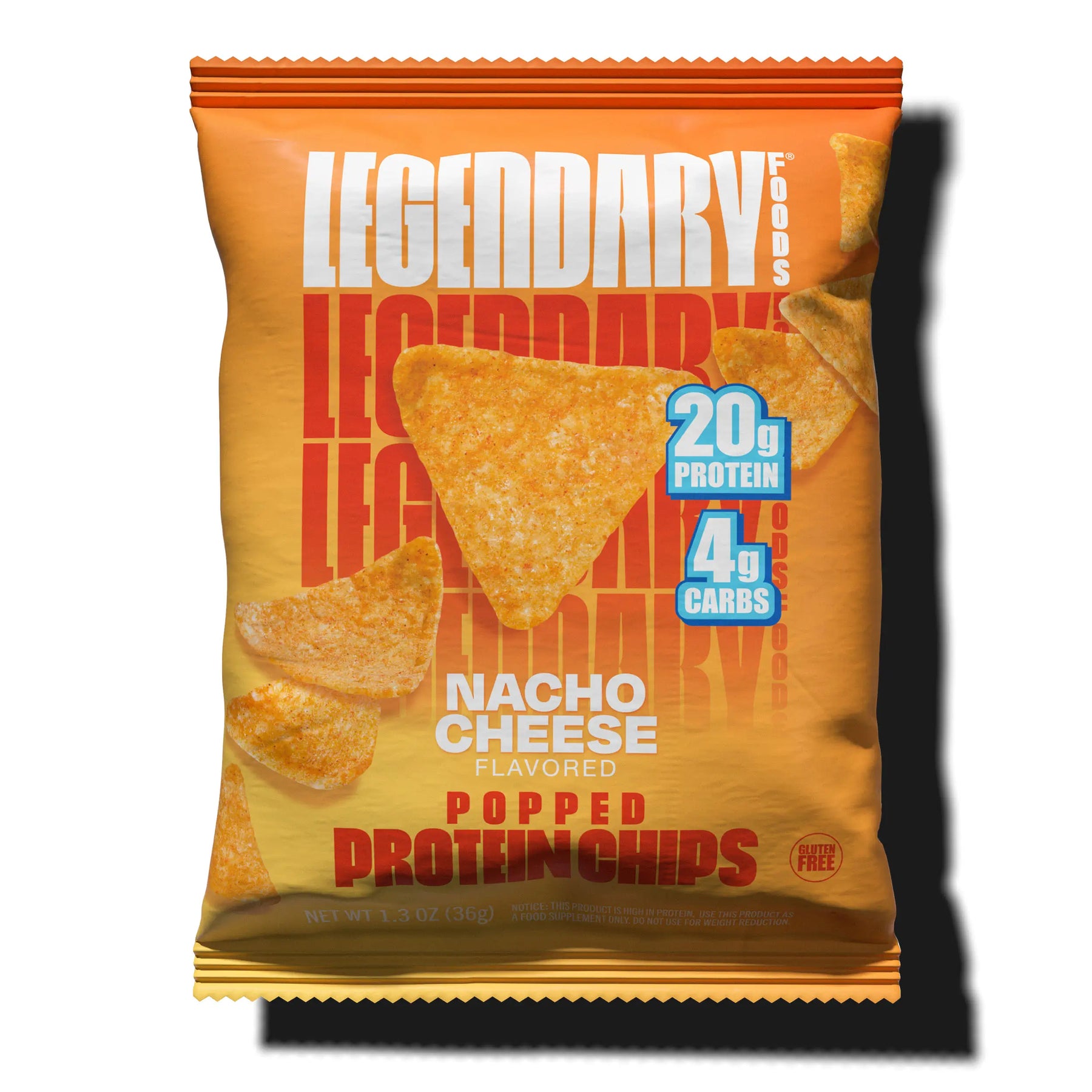 Every bag of Legendary Protein Chips packs 20g of protein, 2g of sugar or less, and only 3-4g net carbs (varies slightly by flavor).